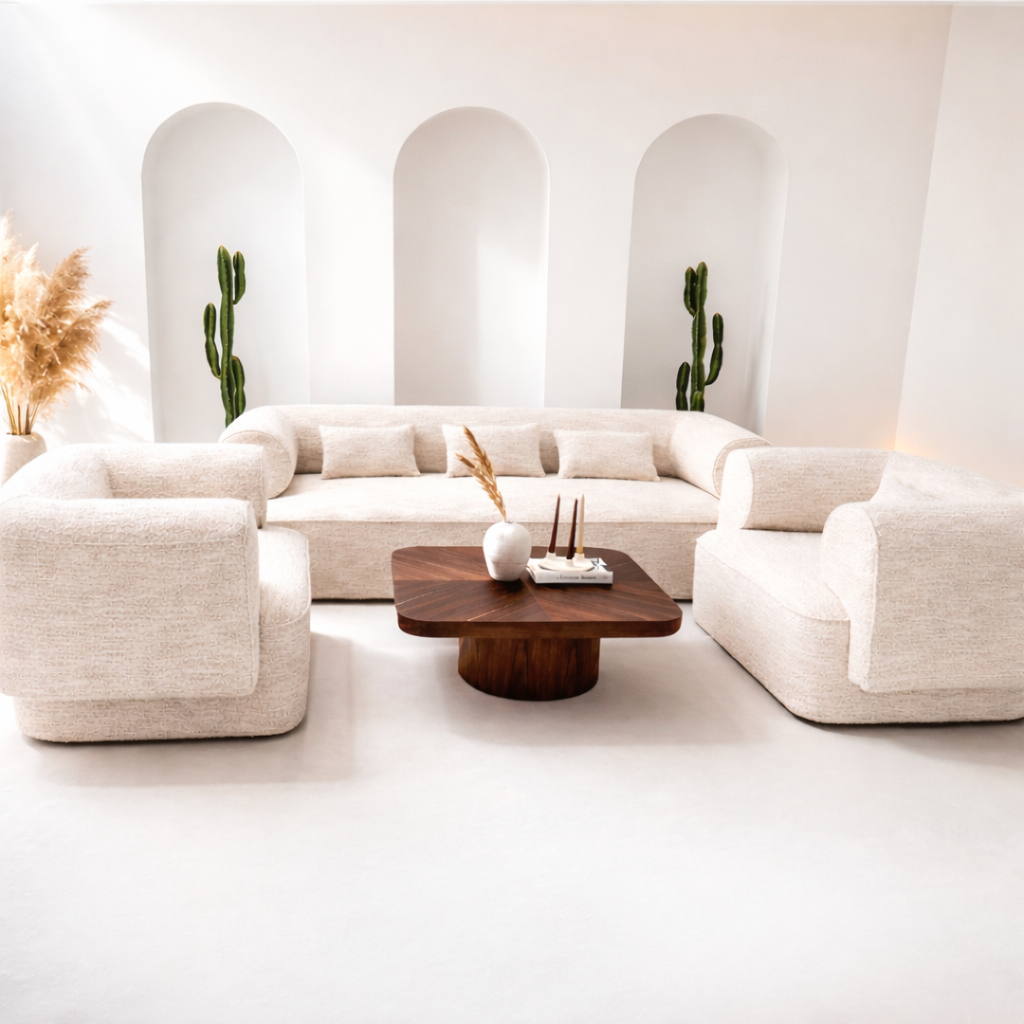 SOFA TRZYOSOBOWA BELAGIO – KREMOWY MELANŻ Z BORDEM