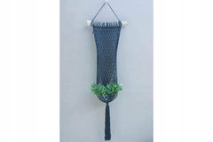DŁUGI POJEDYNCZY KWIETNIK MAKRAMA Z DREWNEM NIEBIESKA
