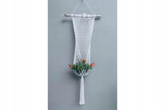 KWIETNIK MAKRAMA POJEDYNCZY Z DREWNEM KREM