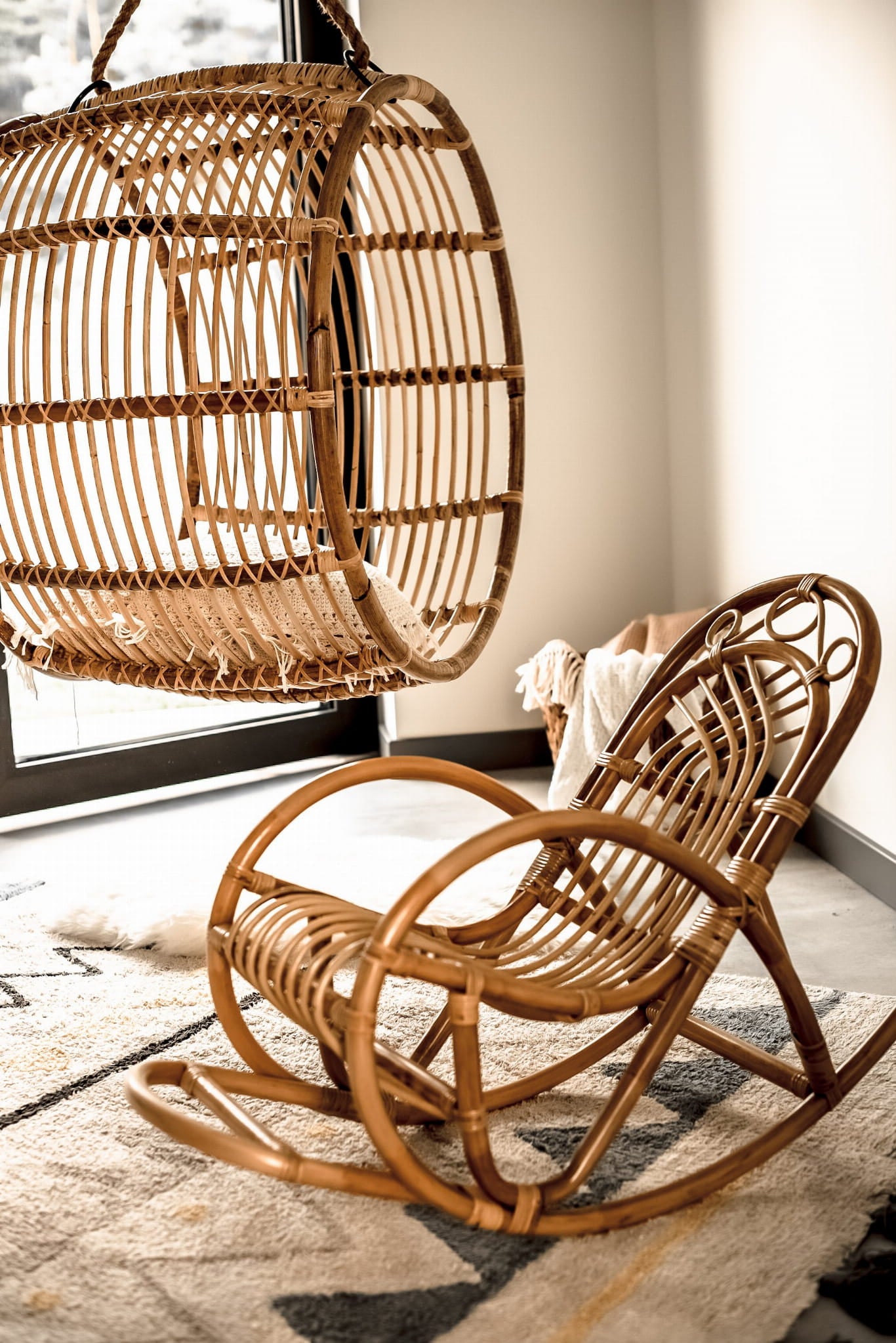 Okrągłe fotel Kai junior wiszący i stojący z rattanu naturalnego to elegancki element dekoracyjny, który idealnie pasuje do wnętrz w stylu boho, skandynawskim czy ekologicznym.