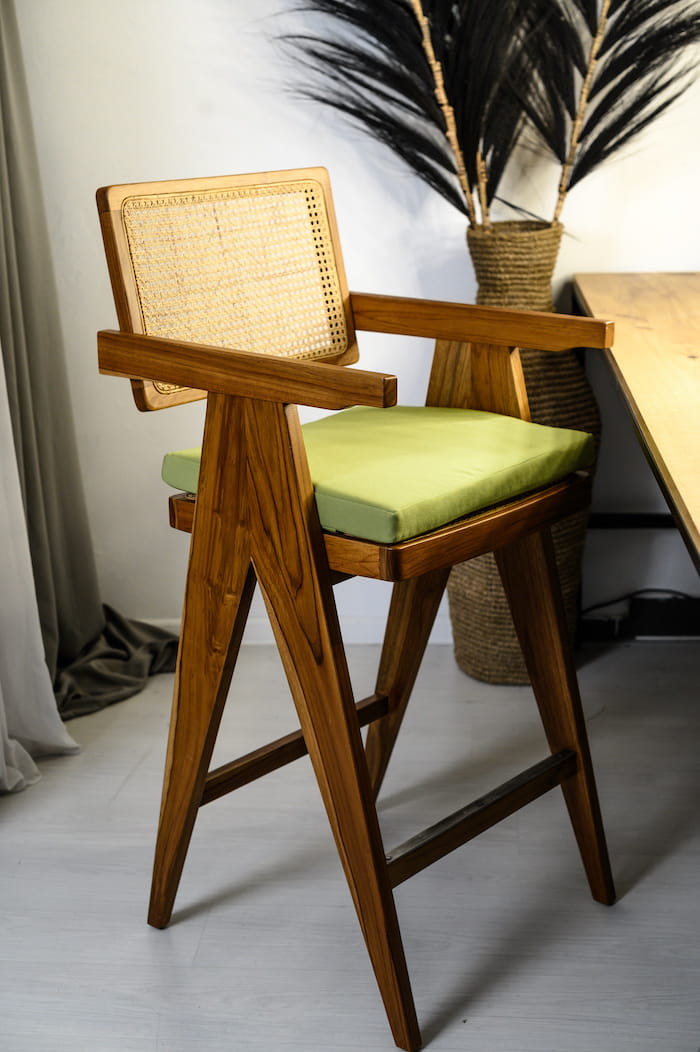 Wysokie krzesło z drewna tekowego to idealne połączenie stylu i wygody.