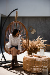 W dzisiejszym świecie, gdzie harmonia z naturą staje się coraz ważniejsza w naszych domach, fotele rattanowe wiszące są idealnym sposobem na wprowadzenie przytulności i naturalnego piękna do wnętrza. Wiszące fotele na balkon, fotel wiszący na taras, fotel kokon do salonu i wiele innych modeli, sprawiają, że otoczenie staje się przytulne. Dzięki nim można stworzyć idealne miejsce na poranną kawę lub wieczorny relaks pod gwiazdami. Fotele podwieszane na balkon, dzięki zawieszanej konstrukcji, można w nich swobodnie bujać się i odprężyć. Warto jednak pamiętać, aby mebli wiszących z rattanu, znajdujących się na zewnątrz nie przechowywać tam cały rok. Rattan jest wrażliwy na wilgoć, dlatego trzeba go odpowiednio zabezpieczyć.