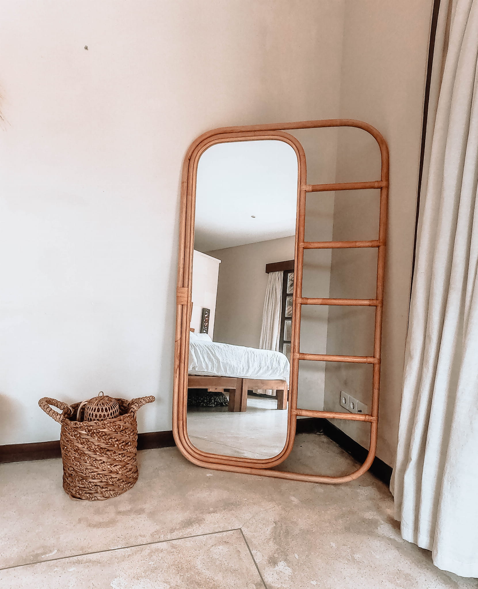 Duże Lustro Rattanowe Roja to idealny dodatek dla miłośnikównaturalnego stylu oraz stylu Boho,to połączenie designu z oryginalną i ponadczasową prostotą.Jego konstrukcja wykonana jest z wytrzymałego rattanu.