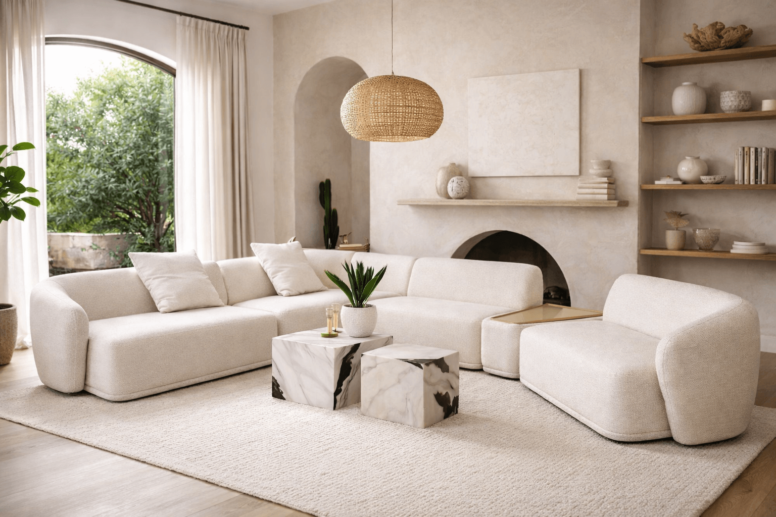 SOFA MODUŁOWA MILANO KREMOWA Z LEWYM PODŁOKIETNIKIEM – NOWOCZESNA I KOMFORTOWA DO SALONU