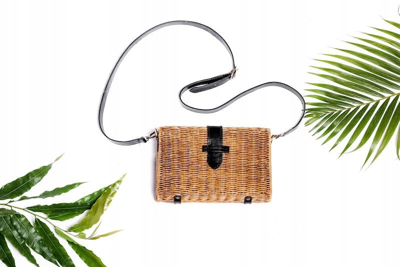 Torebka wykonana jest z naturalnego ratanu i naturalnej skóry.