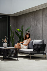 ZESTAW OGRODOWY ALUMINIOWY LEONE Z SOFĄ 2-OSOBOWĄ, 2 FOTELAMI I STOLIKIEM KAWOWYM - SZARY