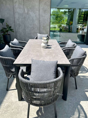 ZESTAW OGRODOWY ALUMINIOWY TIZIANO Z SOFĄ 3-OSOBOWĄ, SOFA 2-OSOBOWA, 2 FOTELAMI I STOLIKIEM KAWOWYM SZARY