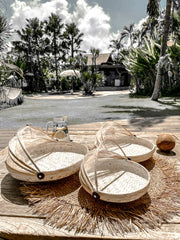 Taca Bali z hiacyntu morskiego dostępna jest w trzech wymiarach, można zakupić pojedyncze sztuki albo zestaw składający się z trzech tacek.