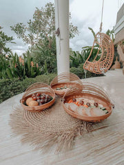 Nie ulega wątpliwości, że zarówno tace, jak i inne produkty rattanowe mają swój urok i wdzięk. Wykonane z naturalnych materiałów same w sobie mają walory ozdobne i dekoracyjne. Aranżując wnętrze w stylu boho czy rustykalnym nie trzeba szczególnie się głowić nad jego upiększeniem. Taca drewniana, bambusowa, bądź z rattanu może służyć nie tylko do serwowania poczęstunku gościom, lecz także pełnić funkcję dekoracyjną. W naszym sklepie znajdziesz dekoracje w stylu boho, które skradły serca wielu osób. Oferujemy także makramy ze sznurka — jedne z najpopularniejszych ozdób ściennych w domach w stylu ekologicznym.