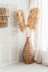 Pionowa dekoracja BOHO z trawy morskiej może być oryginalnym dodatkiem do wazonu z rattanu lub hiacyntu wodnego z naszej kolekcji.
