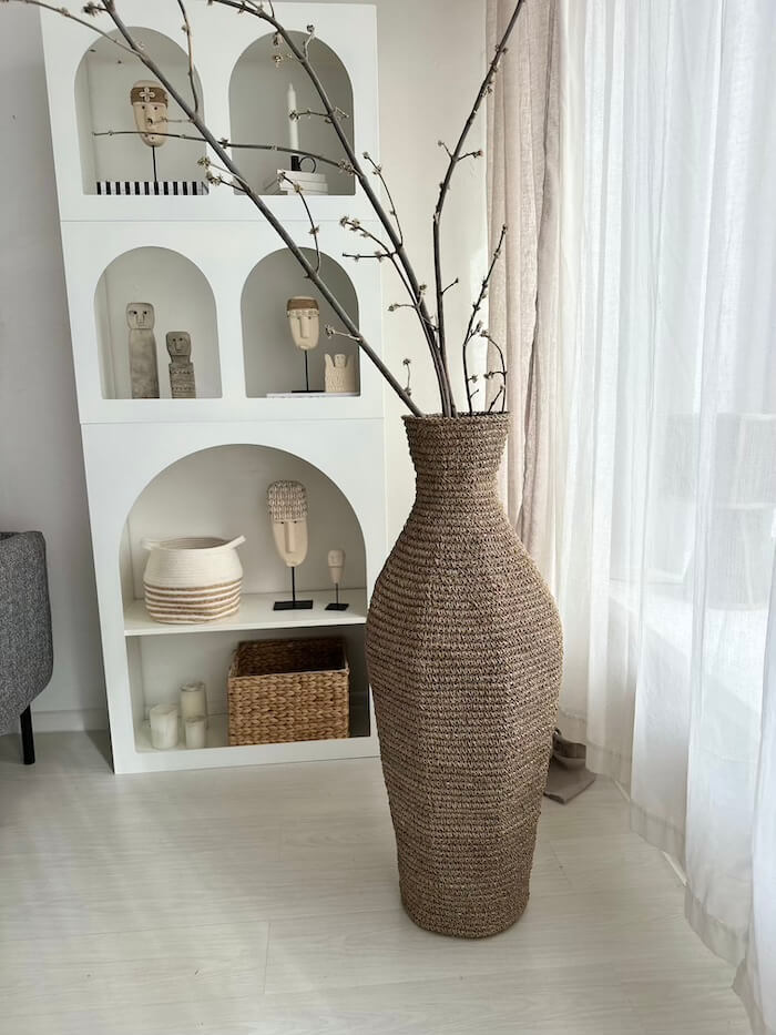 Wazony dekoracyjne z Monnarita nadają się do salonu, pokoju dziennego czy jadalni, a także na zewnątrz — na taras lub balkon. Oferujemy wazony w różnych rozmiarach oraz kształtach. Ich stonowane barwy pozwalają na dopasowanie się do przestrzeni zaaranżowanych w różnym stylu, a zwłaszcza boho, rustykalnym albo ekologicznym. Nasze wysokie wazony na podłogę wykonano z naturalnych materiałów — rattanu oraz hiacyntu wodnego. To idealna propozycja dla osób, które dbają o środowisko.