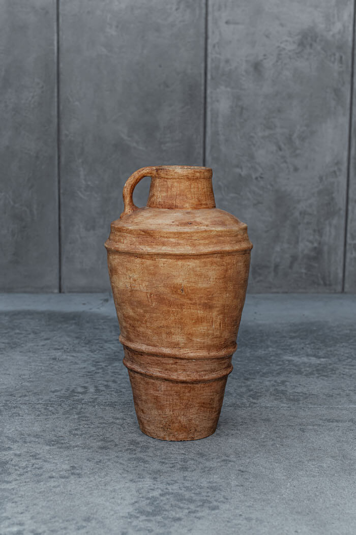 Do wykonania wazonu użyta została terrakota, czyli nieglazurowana lub glazurowana ceramika na bazie gliny, w której wypalany korpus jest porowaty.