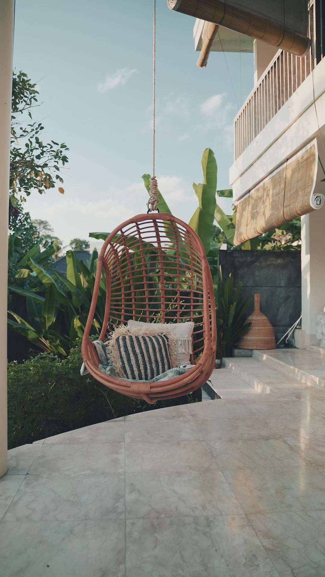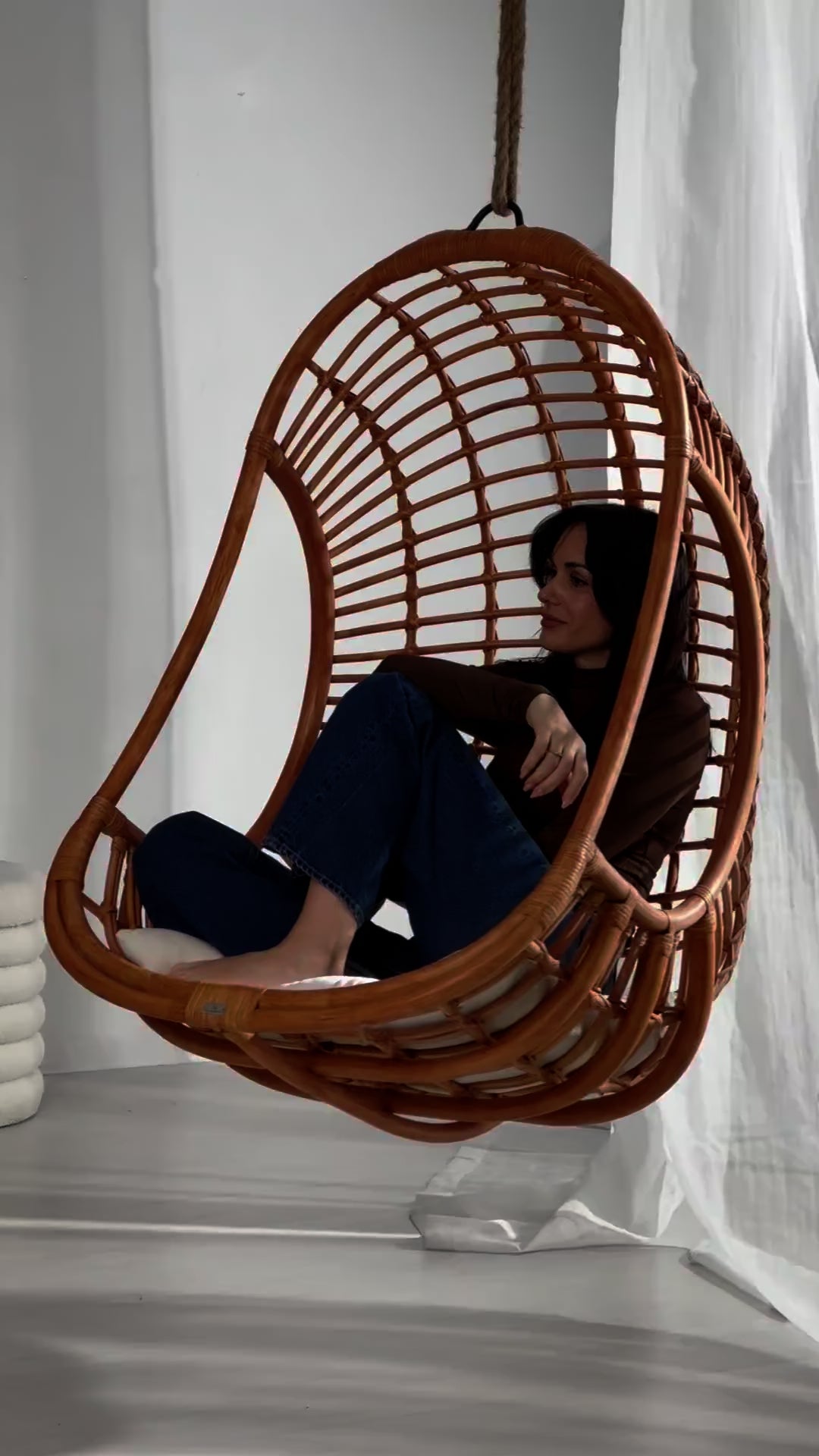 Wiszący Fotel Kokon Hugo to propozycja dla osób poszukujących eleganckiego i komfortowego rozwiązania do relaksu. Wykonany ręcznie z najwyższej jakości naturalnego rattanu, pochodzącego z indonezyjskich upraw, łączy w sobie solidność, estetykę i funkcjonalność. Jego ciepły brązowy kolor wprowadza przytulną atmosferę, a uniwersalny design doskonale wpisuje się w różnorodne style aranżacyjne – od klasycznego, przez nowoczesny, aż po boho.