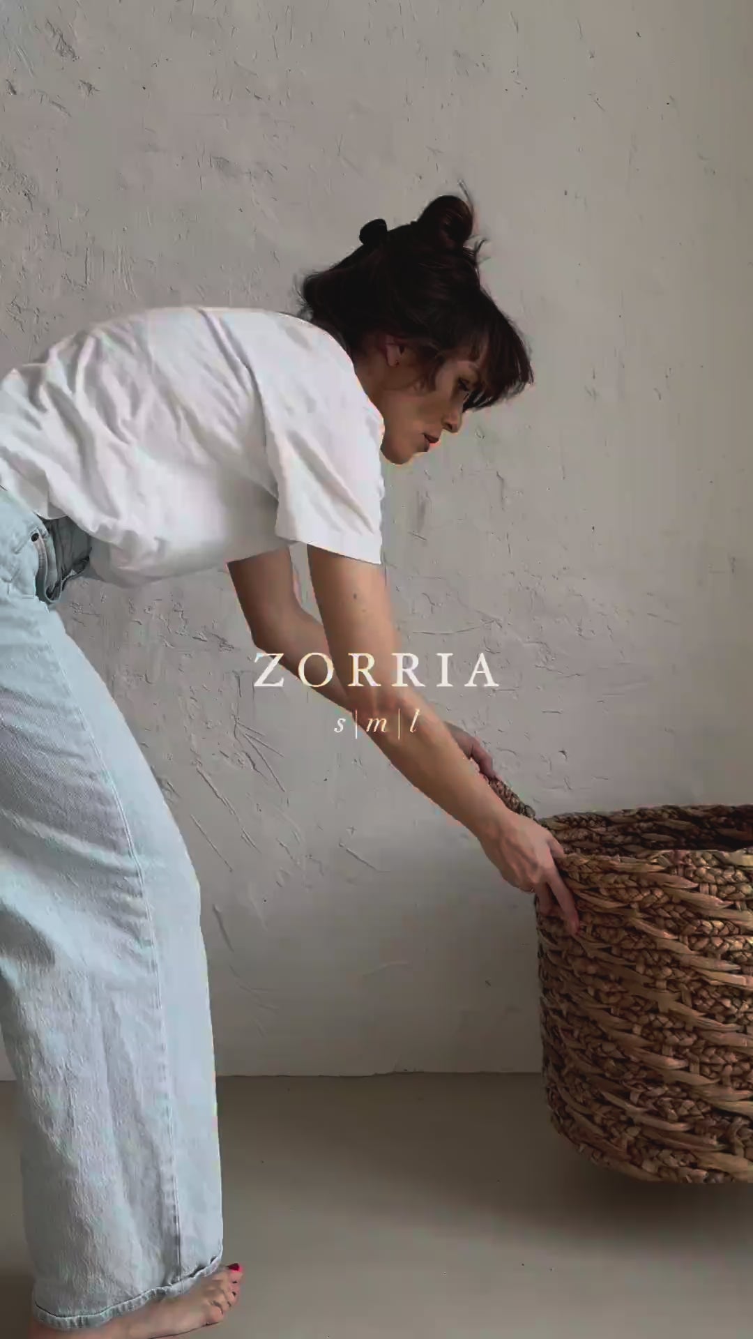 Kosze Zorria są ręcznie wyplatane z naturalnych materiałów, co nadaje im niepowtarzalny wygląd. Każdy egzemplarz jest unikatowy i może różnić się delikatnie kolorem, fakturą czy wymiarami (odchylenia do 1-3 cm).