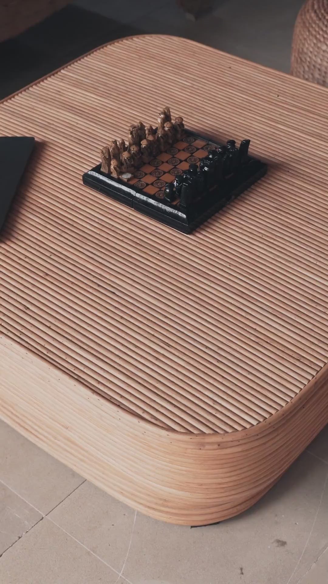 Kwadratowy Rattanowy Stolik Tegal Pochyły to mebel, który łączy funkcjonalność z naturalnym pięknem, wprowadzając do Twojego domu atmosferę relaksu i kontaktu z naturą.